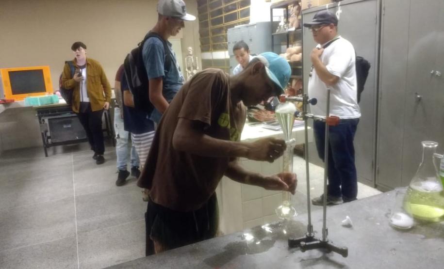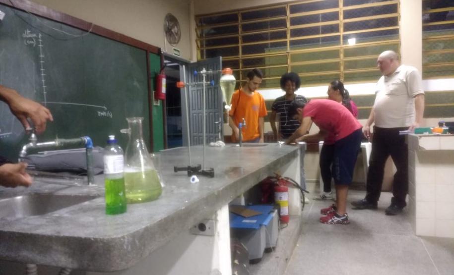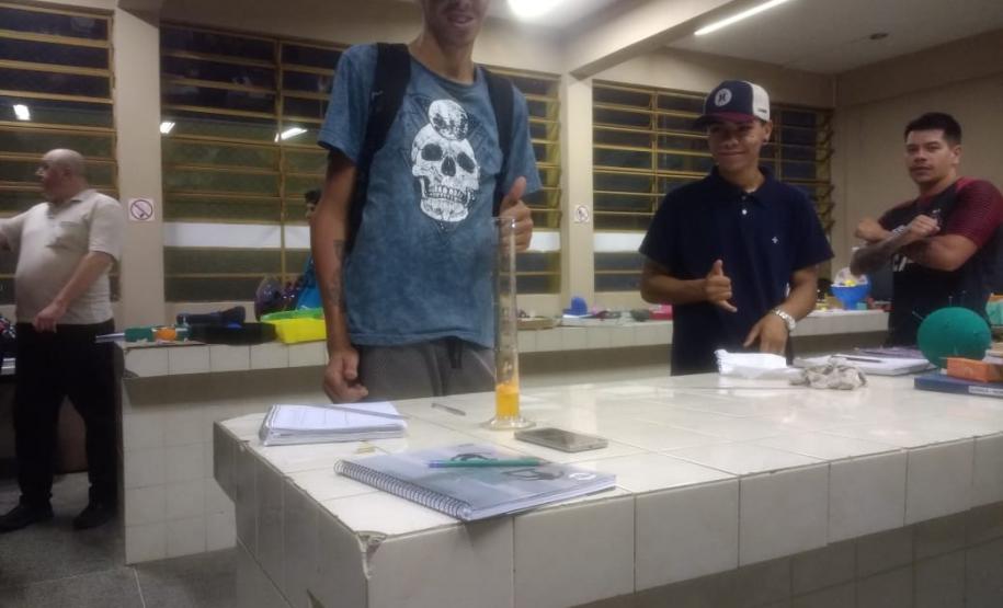Depois de estudarem o conteúdo em sala de aula, alunos do EJA Médio fizeram experiências sobre a velocidade das reações químicas. Disciplina Química, Regência Professor Hioní.
