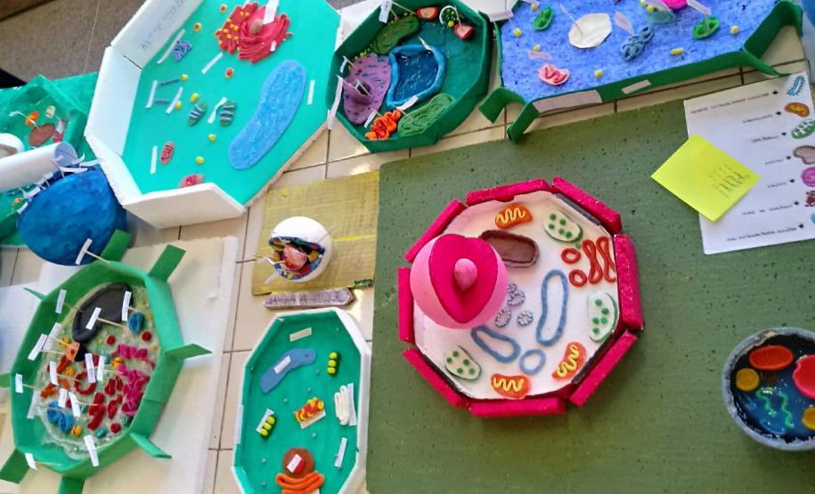 Foi grande o entusiasmo dos estudantes dos 1°s anos do Colégio Estadual Conselheiro Carrão, na confecção de maquetes de células animais e vegetais, representando a estrutura celular e suas organelas. Disciplina Biologia, Regência Professor Fabiano.