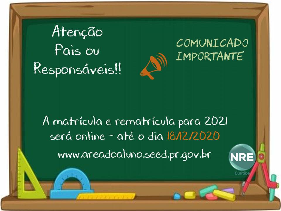 ATENÇÃO: O responsável pelo estudante deverá acessar a "área do aluno", no endereço www.areadoaluno.seed.pr.gov.br