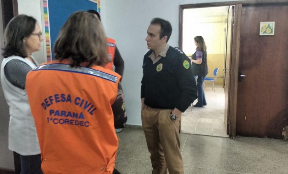 Estiveram presentes para acompanhar o Simulado, o Capitão Murilo e Cabo Wellington da Casa Militar-Defesa Civil e os Técnicos Brigadistas Giovani Pizzaia, Marcia Petrechen e Roderlei Alves do NRE-Curitiba.